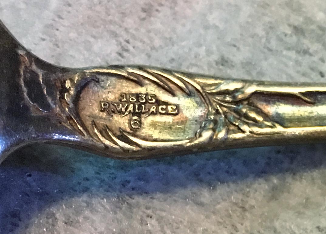 The spoons were made by the R. Wallace Company of Connecticut, founded in 1835 by Robert Wallace of Prospect, CT. The production of silver-plated flatware was big business in Connecticut during the 1800s and early 1900s, with companies in Waterbury, Wallingford, Meriden, and other cities supplying the country (and the world) with fashionable and affordable utensils.